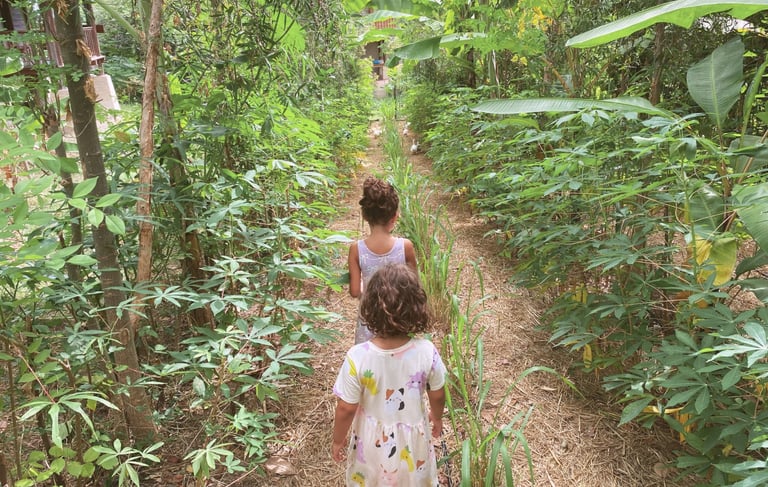Explore edible landscapes, tropical plantings, and soil-centered designs that restore land health and spark curiosity. From composting systems and syntropic beds to seed-saving corners and integrated poultry composting, each stop reveals a real-life story of working with nature.
