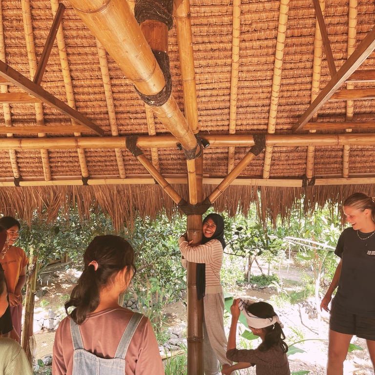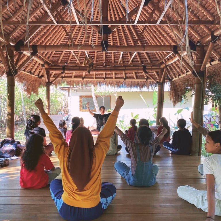 Senaru Rumahku is a small learning group in Senaru Village with a similar mission to Tanah Inaq but with a more structured schedule. They meet three times a week for creative activities combining art, handcrafts, and nature based learning.
