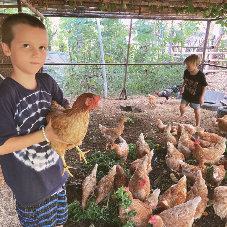 During this activity children explore the garden freely. They touch, smell, and taste herbs and vegetables straight from the soil. They collect eggs from the chicken coop, watch the ducks waddle around, and see Trigona bees up close. For many of them it’s the first time they have seen how food grows or how bees make honey.