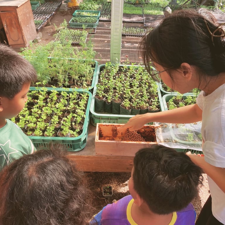 I supported them in building their first kids garden as a new space for learning. The garden became an outdoor classroom where the children learned English through context, describing colors of leaves, talking about shapes of vegetables, and learning new words by doing real things. They learned not only how to grow food but also to care for life, to observe, and to celebrate their small harvests. It is a joy to see how proud they are when they pull out their first carrot or taste a tomato they grew themselves.